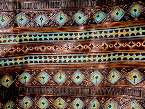 Tan and Turquoise Aztec Leather 3-4 Oz Quarter Hides (11 - 12 Square Feet) Tan and Turquoise Aztec Leather 3-4 Oz Quarter Hides (11 - 12 Square Feet)